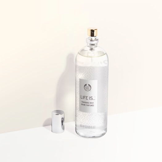 Entourez-vous du parfum stimulant de notre brume corporelle Life Is….